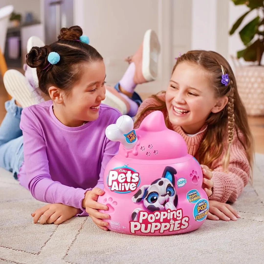 ¡Dale a tus pequeños una experiencia de juego llena de risas con el juguete interactivo Popping Puppies de ZURU Pets Alive! Este adorable perrito de peluche no solo es suave y esponjoso, sino que también cobra vida con sonidos de cachorro realistas. ¡Pero eso no es todo! Cuando lo alimentas con los huesitos de colores, el cachorro hace popó, creando un momento de sorpresa y diversión que encantará a los niños.