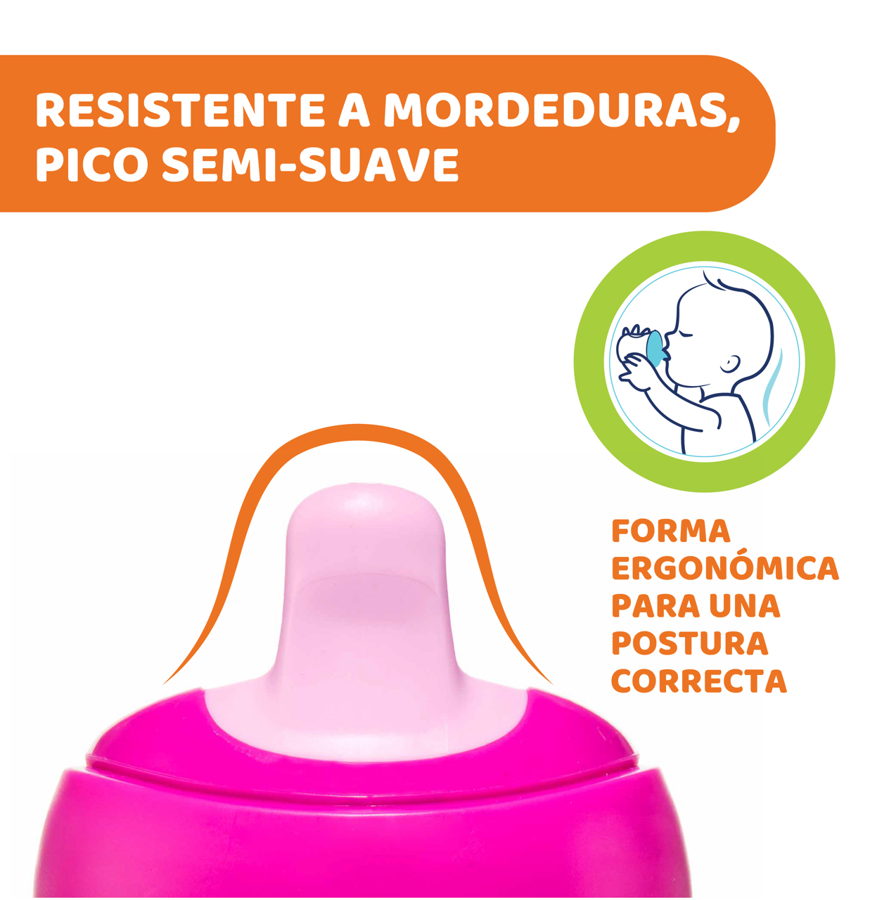 Con pico ergonómico, semisuave ideal para estimular las diferentes habilidades para beber